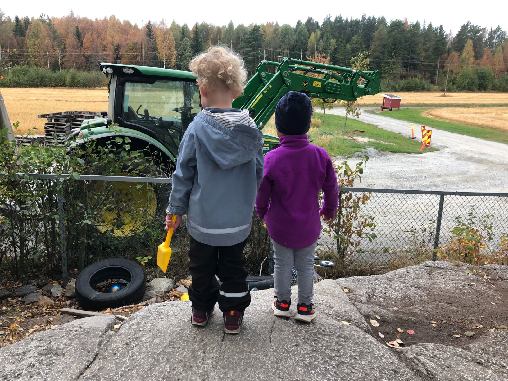 Potetmaskinen er kommet ut på jordet og den er spennede å ta en titt på før det settes i gang med full aktivitet med opptaking av poteter.