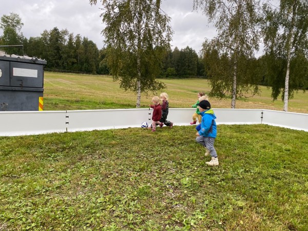 I samarbeid med Oppstad IL har vi fått satt opp en liten ballbinge på østsiden av barnehagen. Denne bingen har gitt oss mange timer i hverdagen med lek og moro med ball.