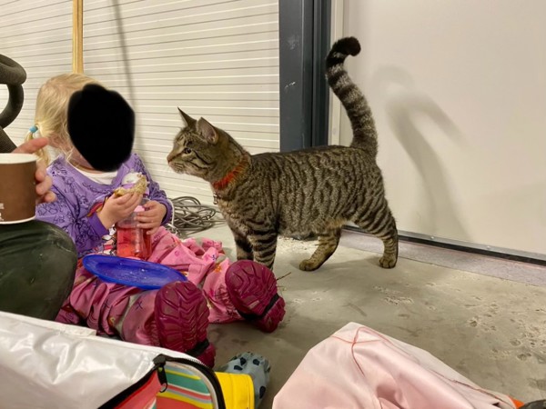 Katten Noddy- er nysgjerrig når små og store kommer på besøk på gården