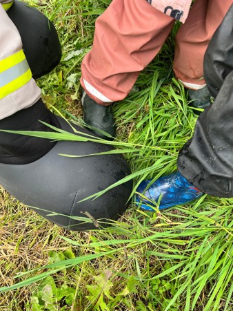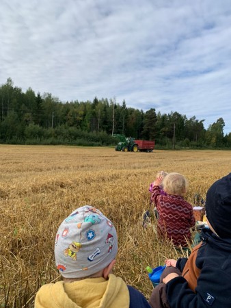 Her ser vi på årets siste åkerlapp blir tresket i sesongen 2023
