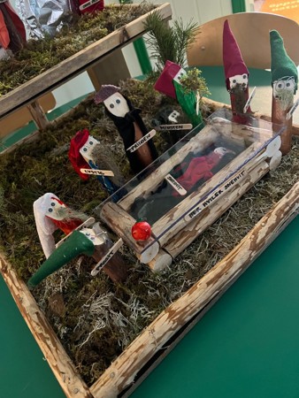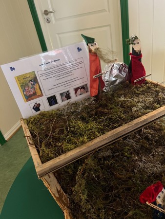 Klubben har sett film og vært ute i naturen og hentet materiell som de har benyttet til denne montasjen de har levert til biblioteket.