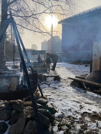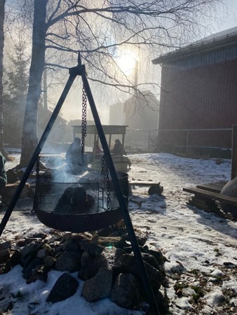 Gul frokost i barnehagen er en tradisjon før påskenroen senker seg i de fleste hjem. Mange familier tok frokosten sammen med oss her i barnehagen og det blir alltid en trivelig stønn for liten og stor. Under her følger noen bilder fra den magiske stunden rundt bålpanna ute...