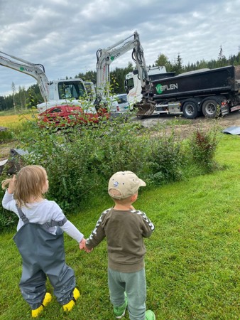 Rundt barnehagen foregår det graving fiber. Samtidig som høyspentledningene skal graves ned i jorda. Mange gravemaskiner , lastebiler og andre kjøretøy og hvile øynene på