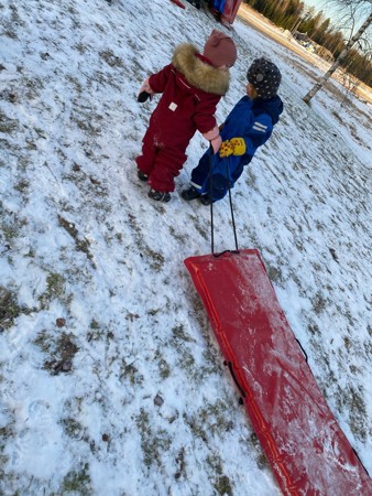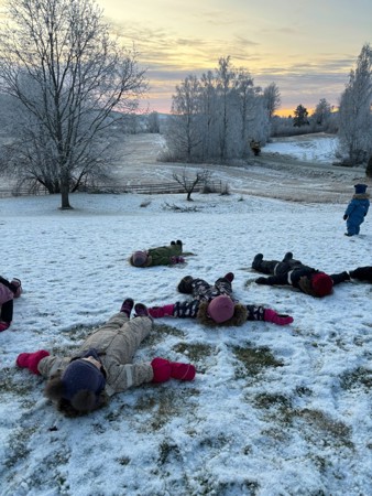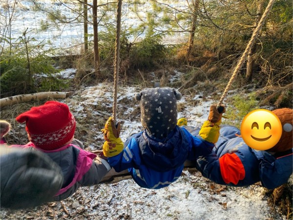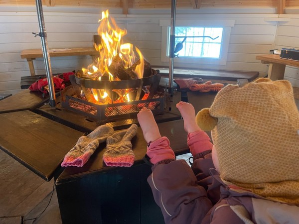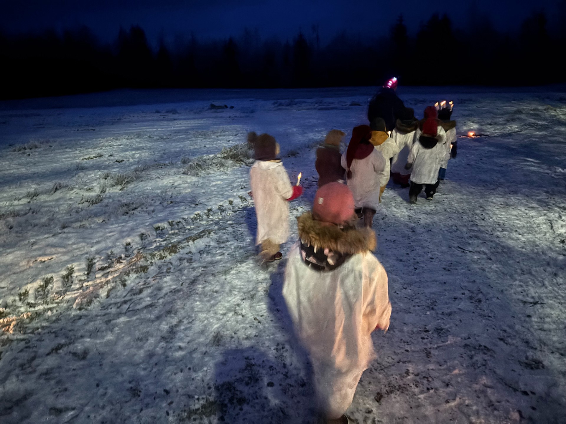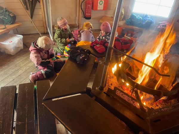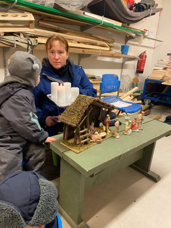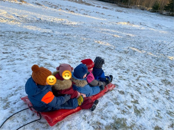 Tradisjon tro så går vi Lucia kl 8.00 ute i vår barnehage. Toget har avgang oppe i barnehagen og ender nede i grillhytta hvor foresatte og barn får en stund sammen etter at toget har nådd endestasjonen. Bildet fra grillgytta vår er sendt inn fra en av de foresatte- og teksten varmer våre hjerter. TAKK, sammen får vi til en god stund for alle!