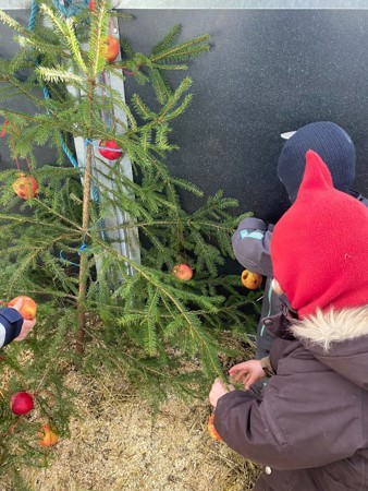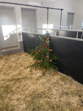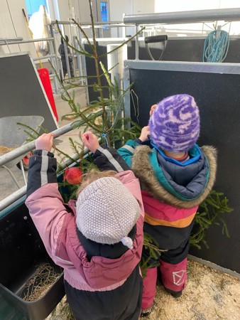 Barnehagen er stengt romjula, så dagen i dag har bl.a gått med til pynting av julegrana hos Rosinante (eselet) og hos geitene våre. Vi ønsker alle både 2 og 4 beinte en GOD JUL.