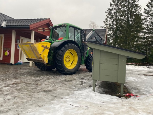 Vintermåneden driver bonden med å kjøre kornet fra lager silon på gården og ned på kornsilo på Skarnes.