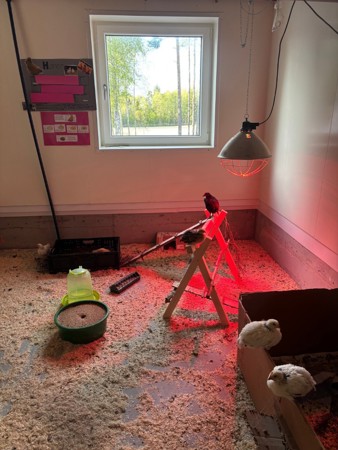 Kyllingene vokser fort, det er spennende og følge med på utvikling i hva kyllingene mestrer dag for dag. Øvelser i treningsapparatet sitt gir styrke i beina og vingene. Nå utforsker kyllingene hele rommet sitt og ikke bare pappesken som de har hatt siden de ble flyttet over fra rugemaskinen.