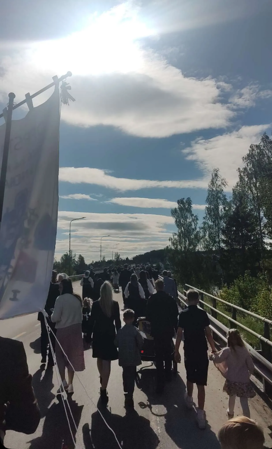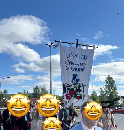 Vår fane i årets 17mai tog på Skarnes. En minnerik dag for både små og store.