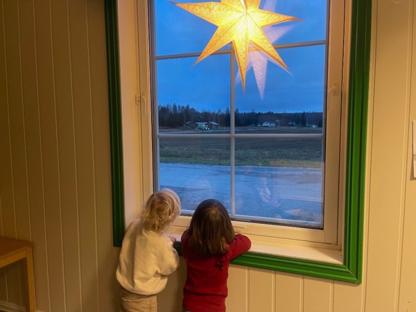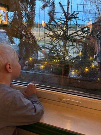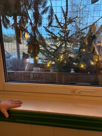 Ekornet har fått julelys på grana- det er lov å undre seg om ekornet kommer i meiserestauranten selv om grana har fått lys..