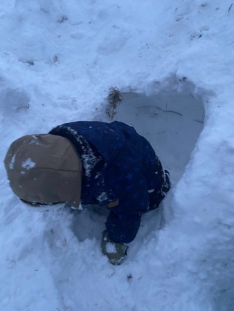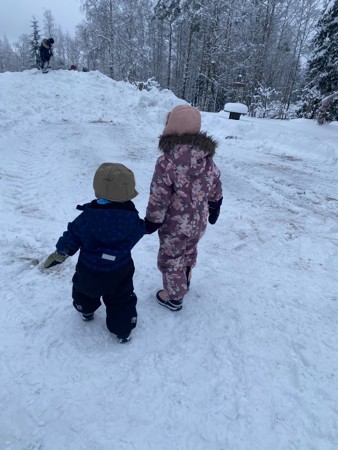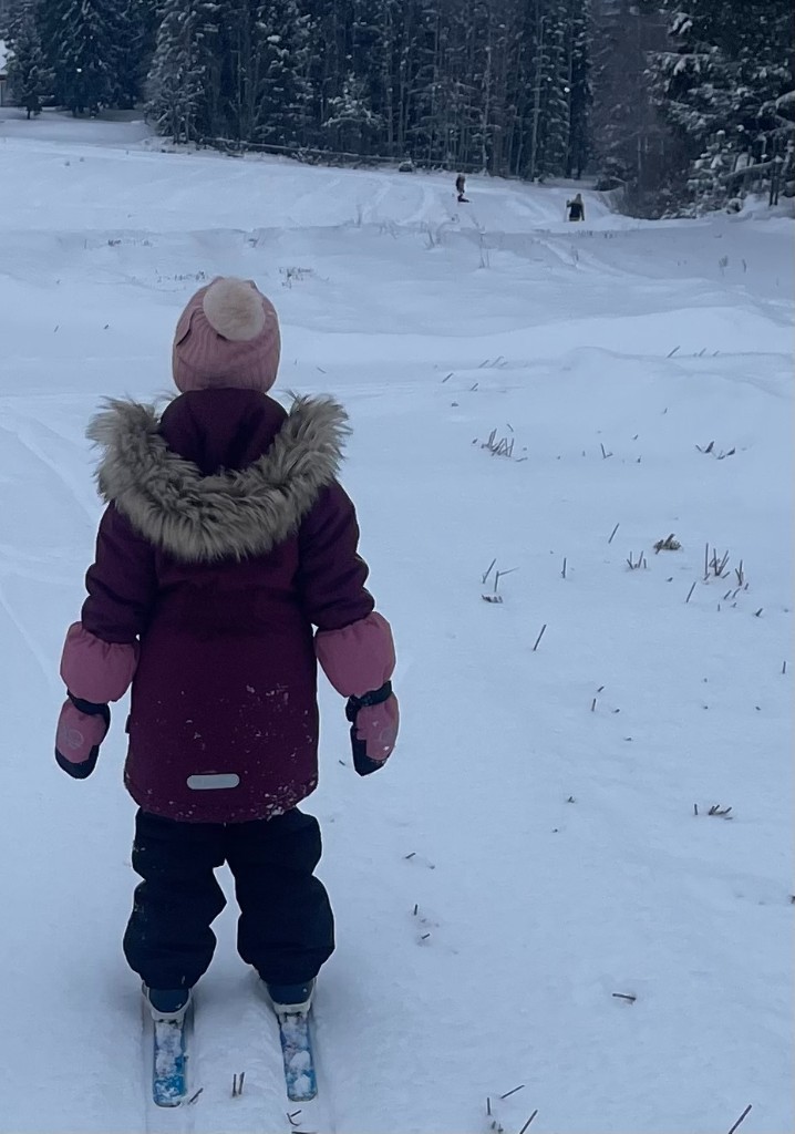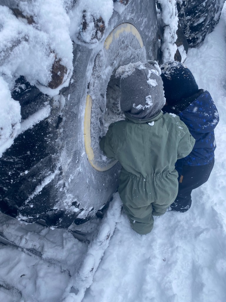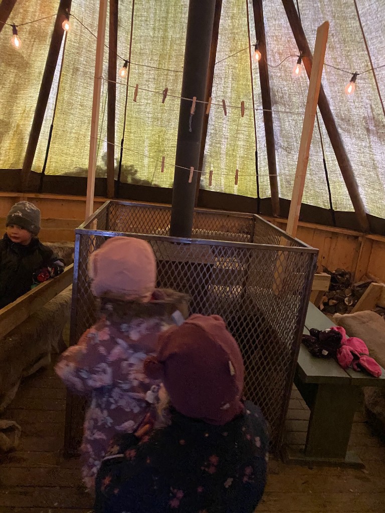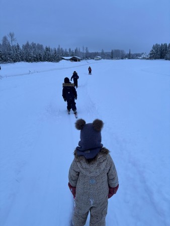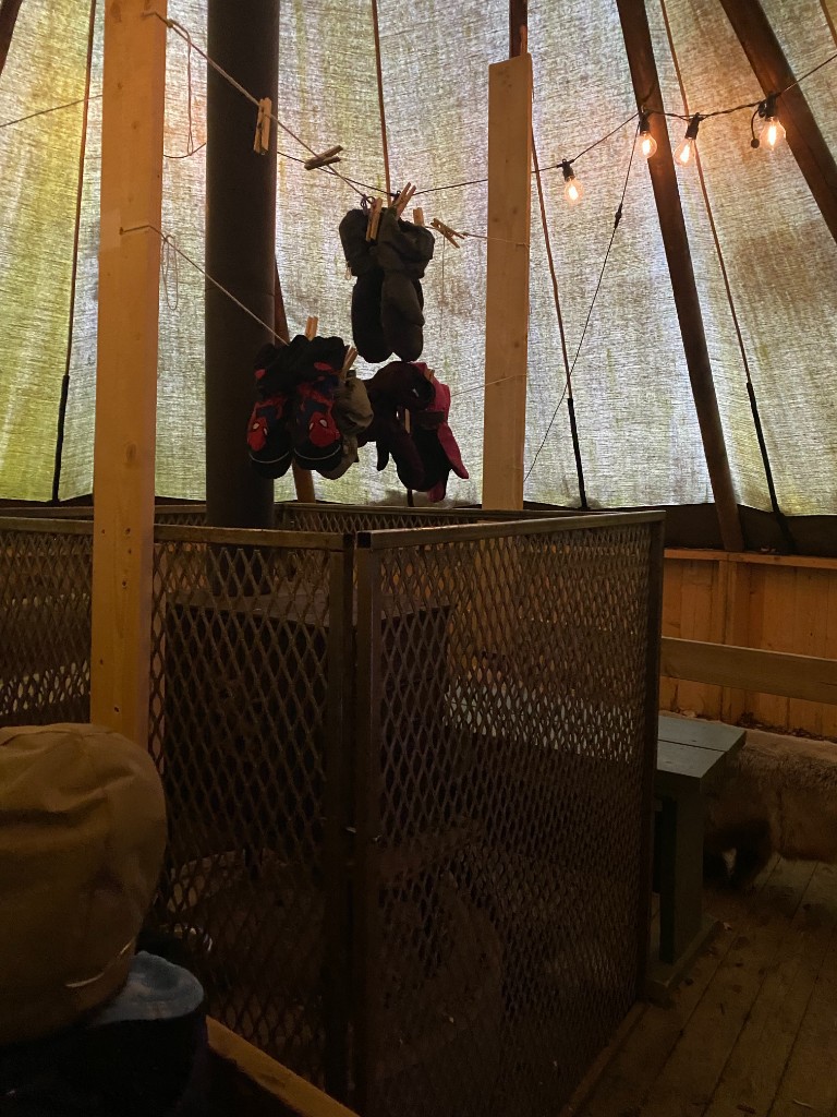 Tørkesnorer over vedovn i lavo har vært godt å ha. Utrolig godt med litt lunk i vottene før neste lekeøkt starter etter en god lunsj.