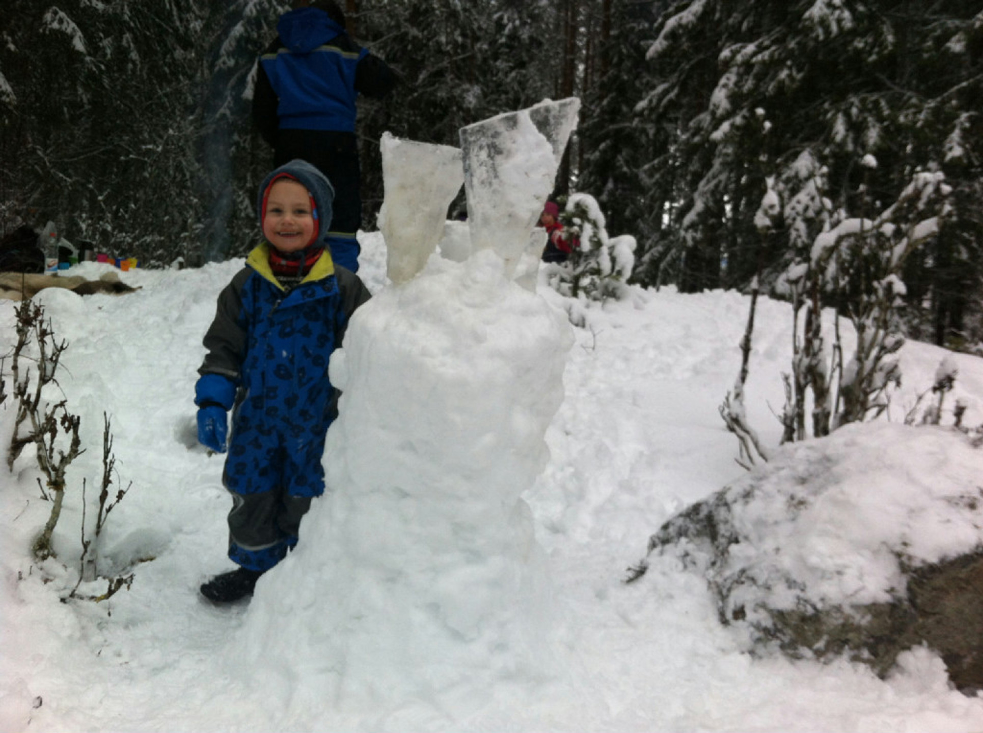 Bekken mot hytta var dekket av is og perfekt for å finne isplater til å lage de flotteste kunstverk. Ungene bar is til den store gullmedaljen - og var fikk en god mestringsfølelse da verkene var ferdige.