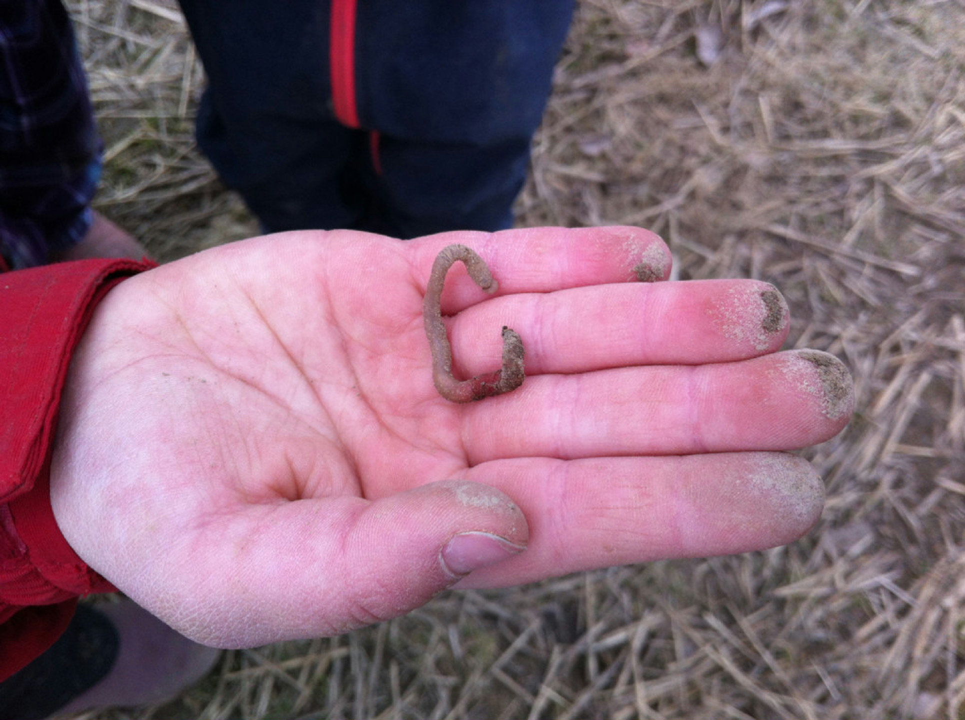 Oppstadmarken er i full gang med våren og ivrige små hender plukker og studerer mark med stort engasjement.