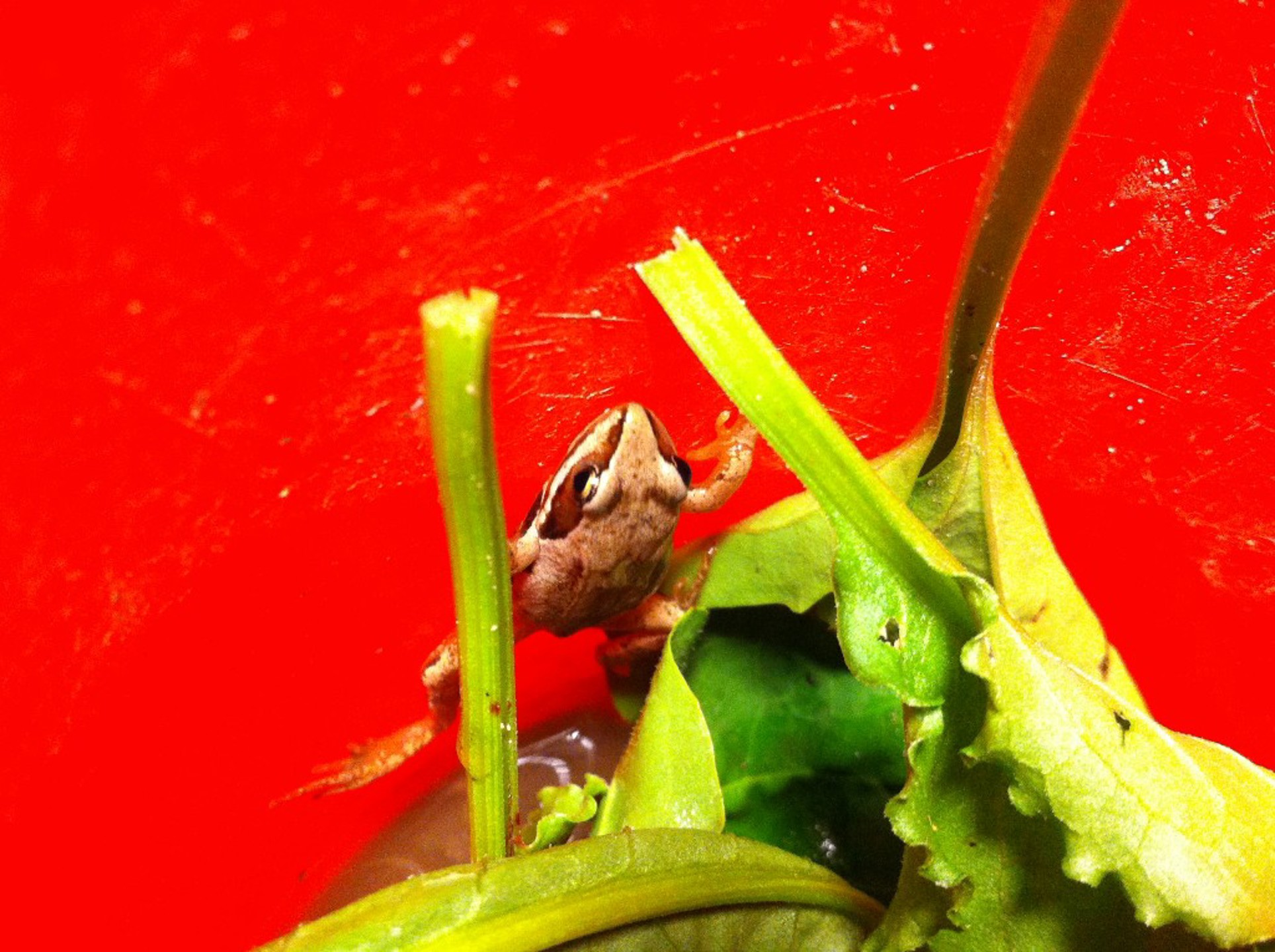 Froskeegg ble hentet opp fra tjennet tidligere i vår, men dessverre ble det ikke noe av disse eggene. Men da et barn fant denne lille karen en onsdag i juni fikk vi en unik sjanse til å studere frosken på nært hold. Mange av barna syntes den var veldig liten, og det store spørsmålet barna undret seg over var hvordan i alle dager den hadde unngått å bli spist..