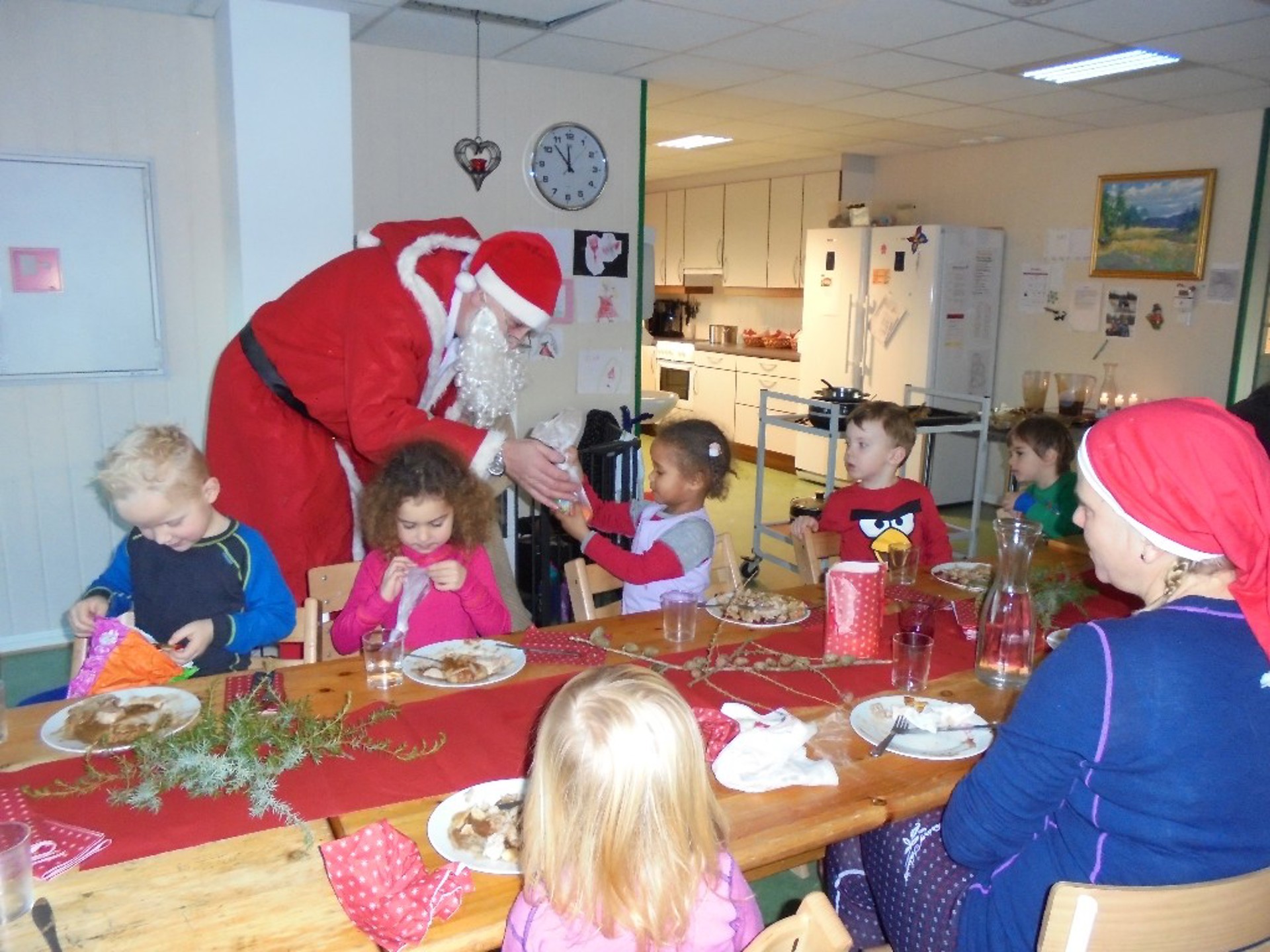 Oppstadnissen kom også på besøk, til barnas store begeistring. Han hadde med seg poser med litt godt oppi. Vi sang "På låven sitter nissen" for ham før vi ønsket ham en god jul!