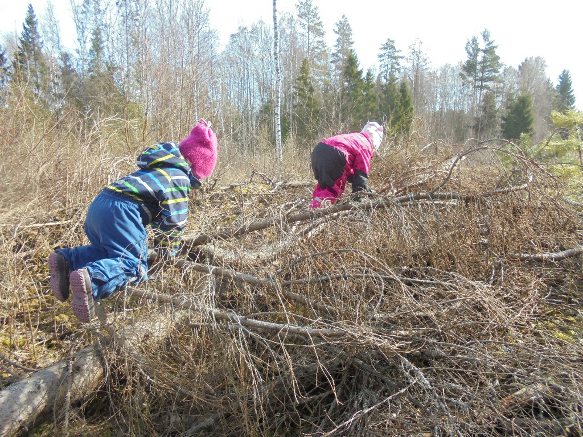 Insekter, edderkopper og andre små kryp ble observert borte ved gapahuken på tur i uke 15. Gåsungene hadde sprunget ut enda mer og flere fugler ble hørt og sett i toppen av trærne. Spikkeknivene ble tatt frem og sagene ble flittig brukt.
