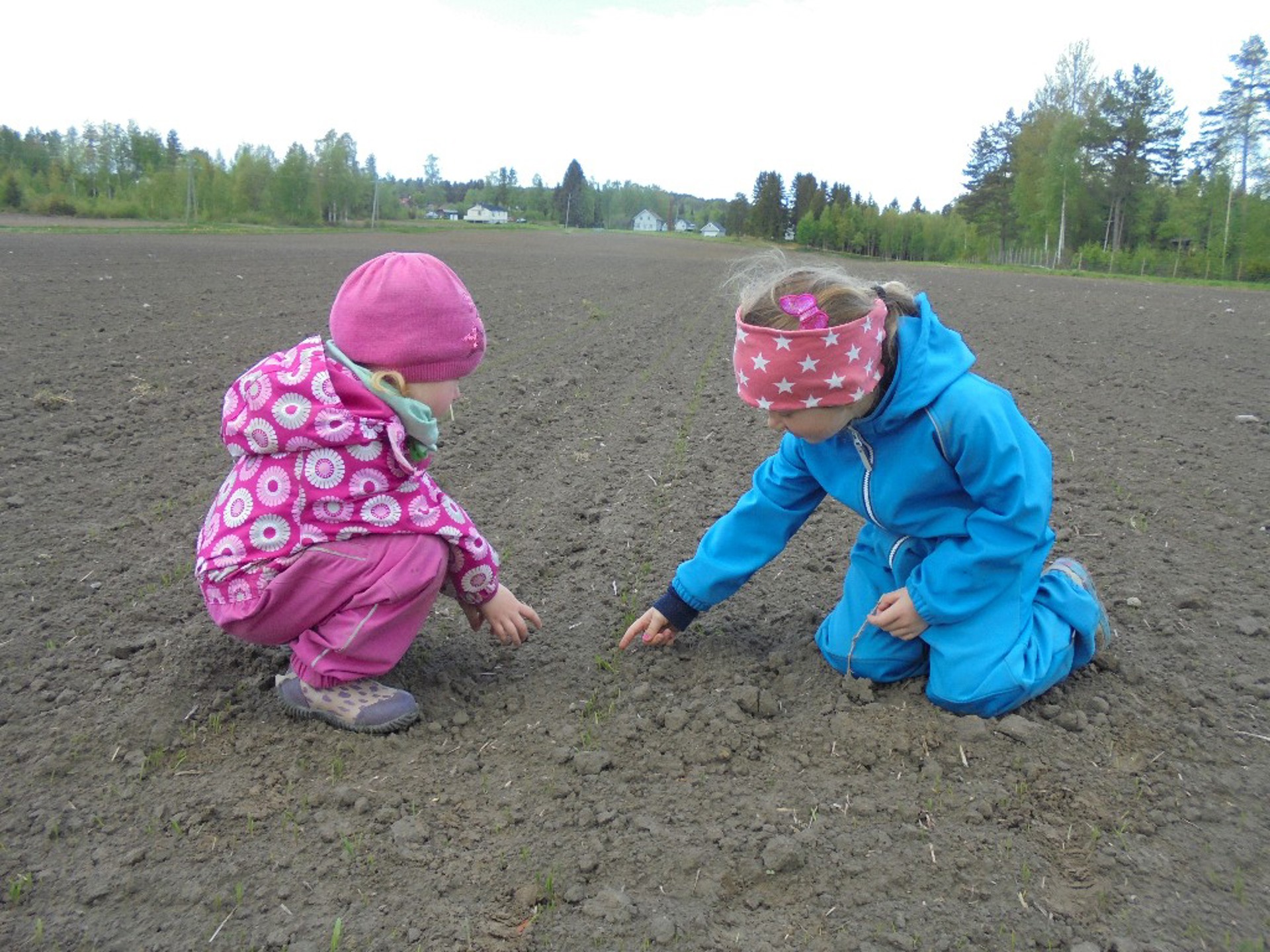 Å følge med på bonden og landbruket er en stor del av vårt pedagogiske innhold, som også er forankret i vår årsplan. Nå har det begynt å spire på jordet ved barnehagen, og vi måtte selvsagt ut og sjekke ståa på de små bladene som har kommet opp.
