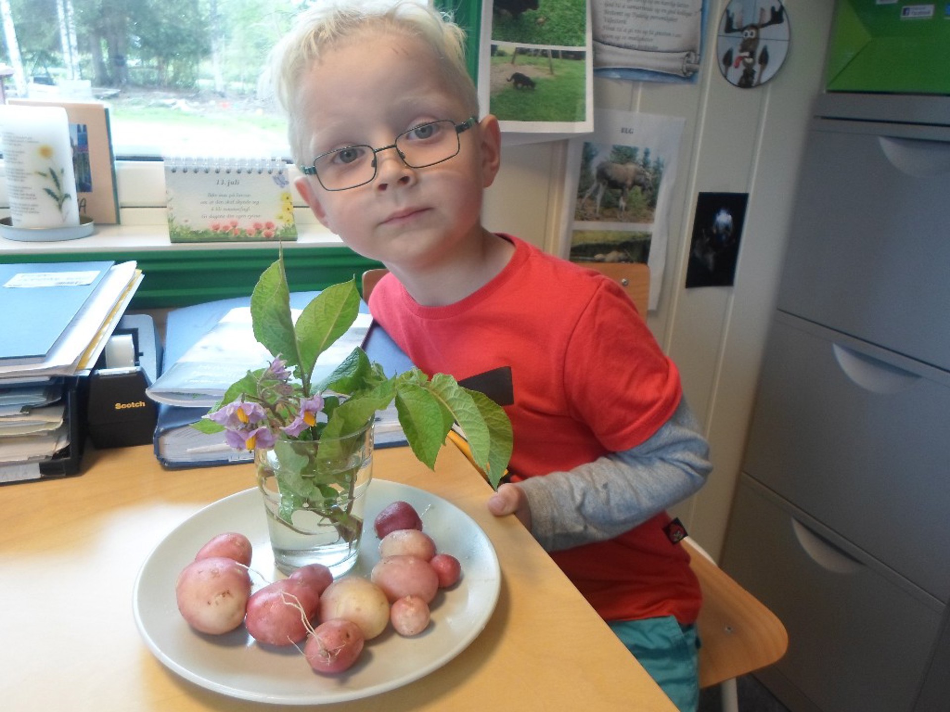 "Fra jord til bord" er forankret i våre pedagogiske prinsipper, og i disse dager skjer det mye spennende nede i jorda. Barna som satt potetene i vår følger nå med på størrelsen fra uke til uke.