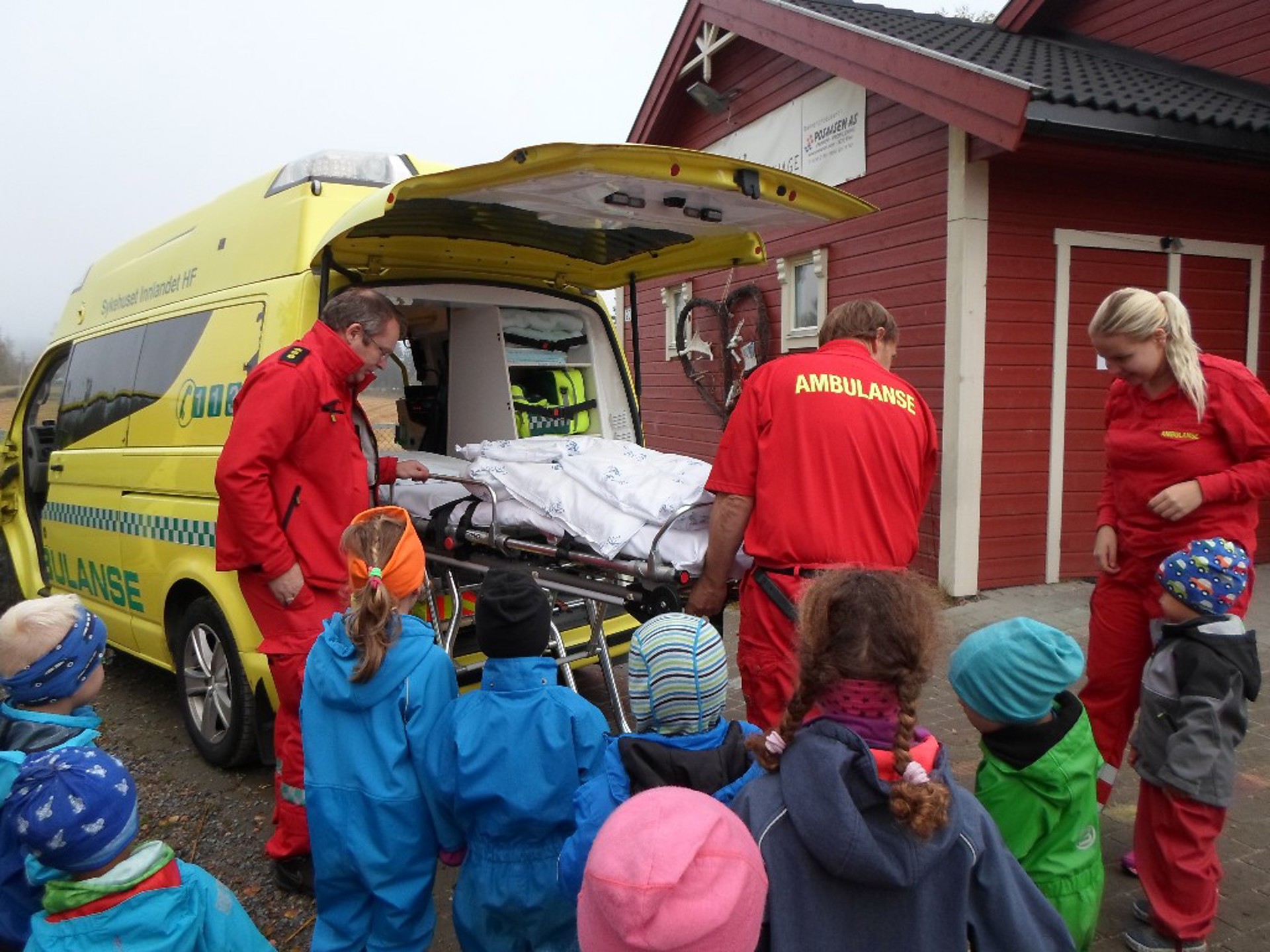 Vi fikk se inne i ambulansen og se på det forskjellige utstyret de bruker når noen trenger hjelp. Vi snakket på forhånd at det er ulike grunner til at man trenger hjelp av ambulanse. Man kan være alvorlig syk, man trenger kanskje å komme seg fra sykehuset og hjem - og en sjelden gang blir det til og med født babyer i ambulanser! Det er flott at noen jobber med å hjelpe andre som trenger det!