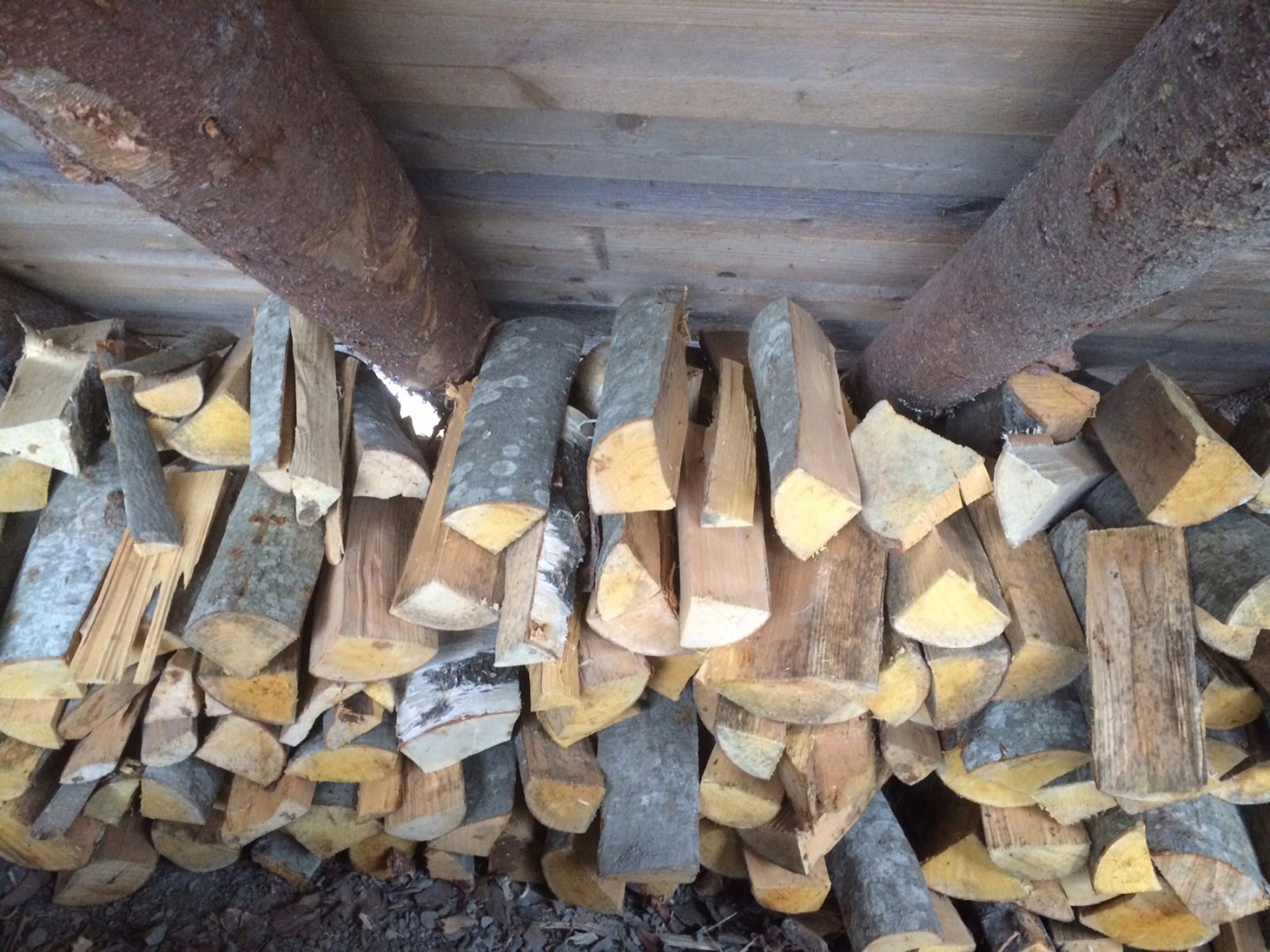 Mer ved har ankommet gapahuken, og i dag har vi jobbet med å legge veden på plass inne i gapahuken slik at den holder seg tørr. Flinke unger hjalp til å bære og sjaue, og etter arbeidsøkta ble det pølser og varm saft til lunsj.