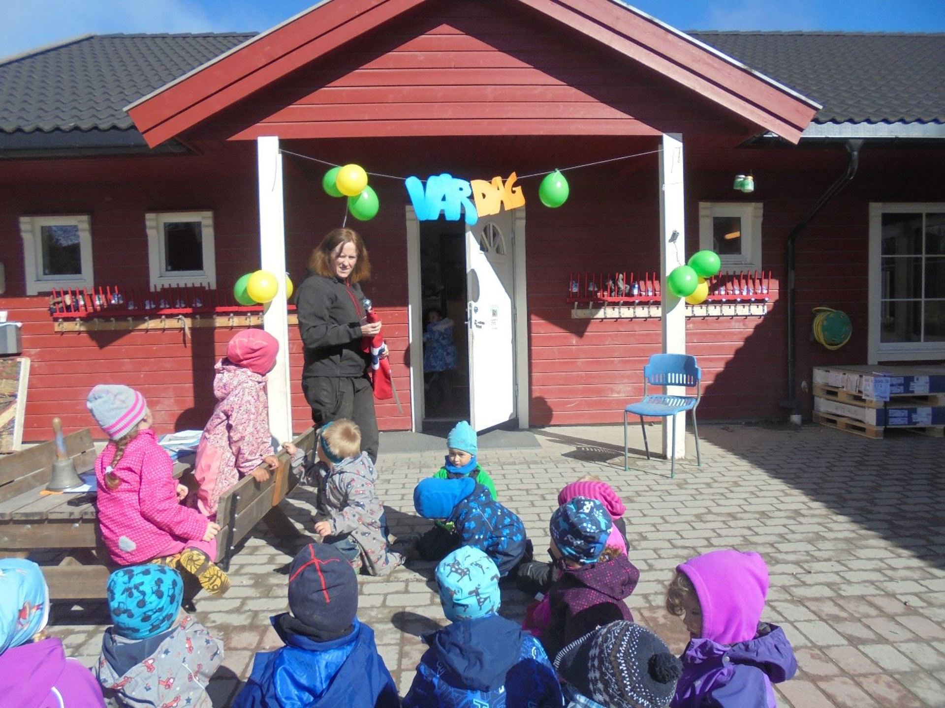 Vårdagen er en av tradisjonene vi har for å markere vårens ankomst. Da vi alle hadde kledd på og gått ut sprakk skydekket opp og sola varmet oss med de første sommerstrålene! Herlig. Vi kickstarta dagen med nasjonalsangen. Dagen har inneholdt forskjellige aktiviteter; tautrekking, potetløp, bygging av sandslott, sekkeløp, og mye lek og moro.