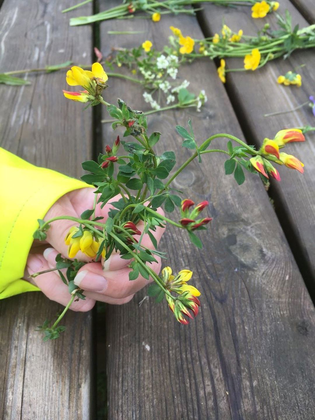 Årets utflukt hadde barnehagen som base, og vi hadde ulike aktiviteter i grupper. Vi hadde blant annet blomsterplukkingstur med artsbestemmelse, fjøstur med saging av kvist og matsanking til dyra og fugleobservasjoner.