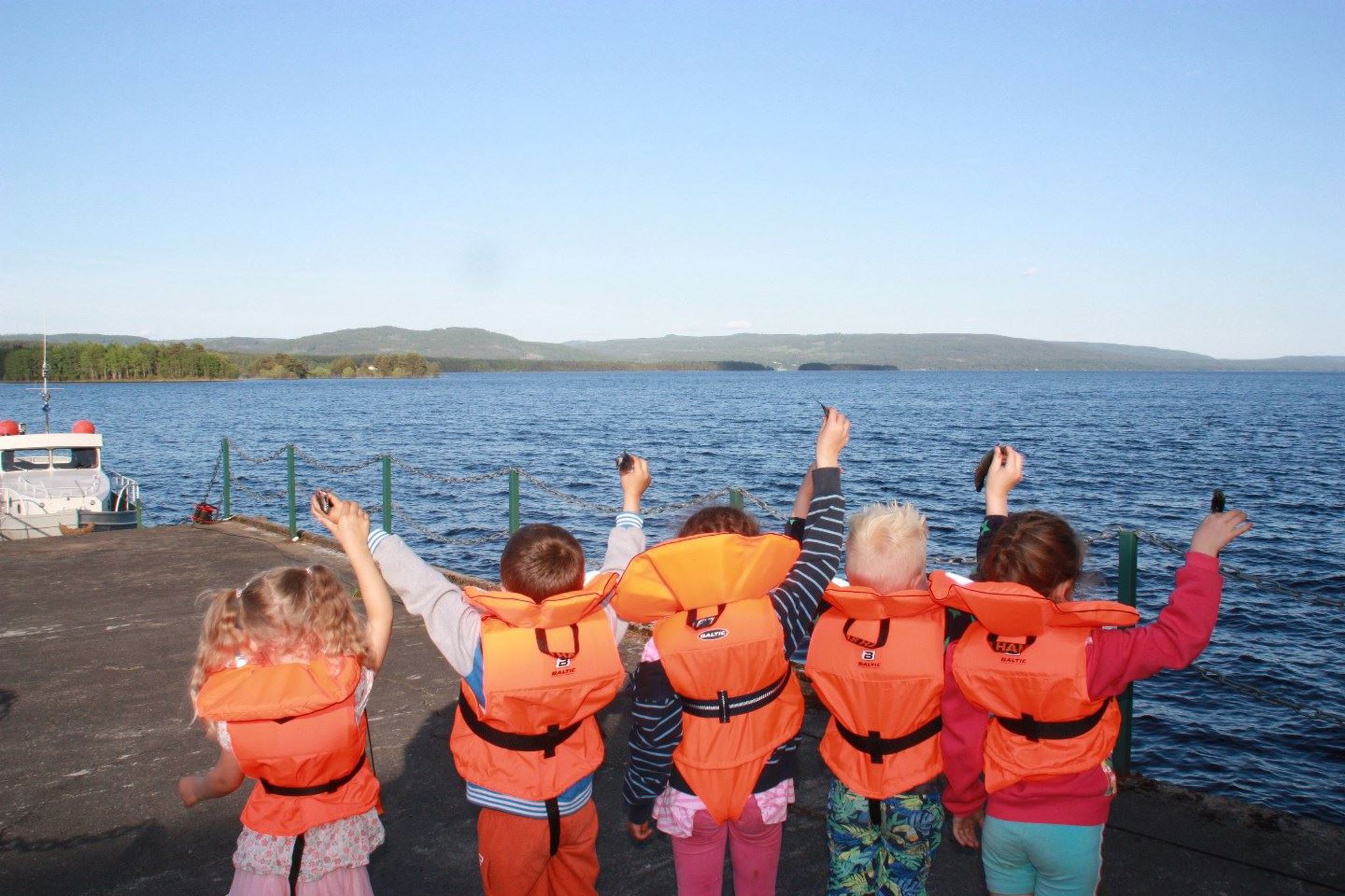 Etter maten tok vi på redningsvester og tok med fiskestenger og mark og prøvde fiskelykken på brygga.