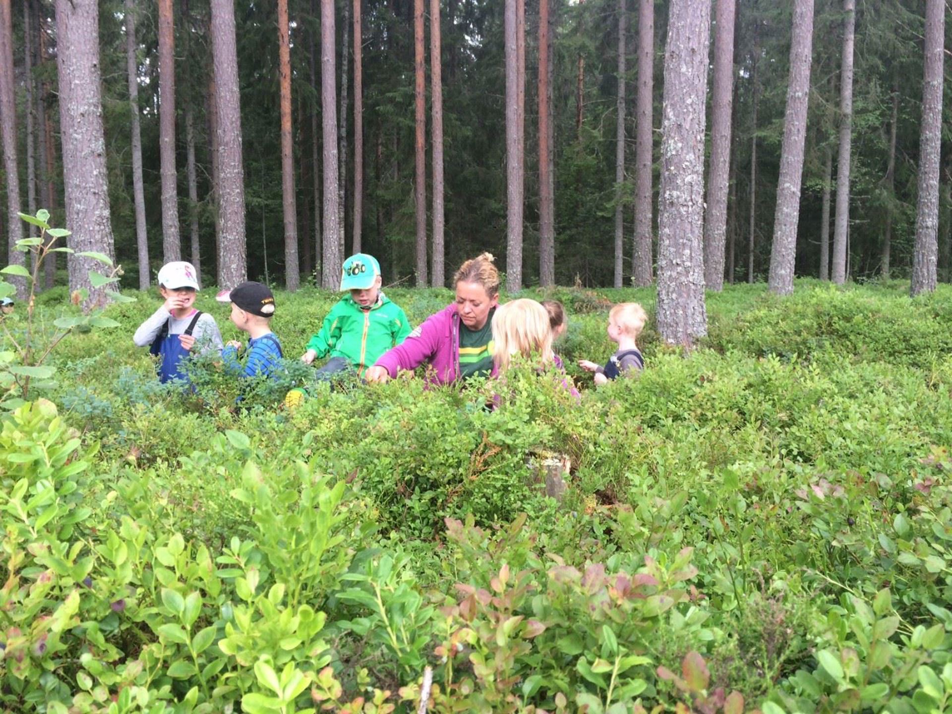 Det er noe eget med de første blåbærene, og vi satte oss godt tilrette i tua! Vi plukket to nesten fulle kopper, og tok bærene med oss tilbake til barnehagen for å dele med de andre.. Vi har allerede lagt planer for hva vi skal lage av blåbær når sommerferien er slutt!