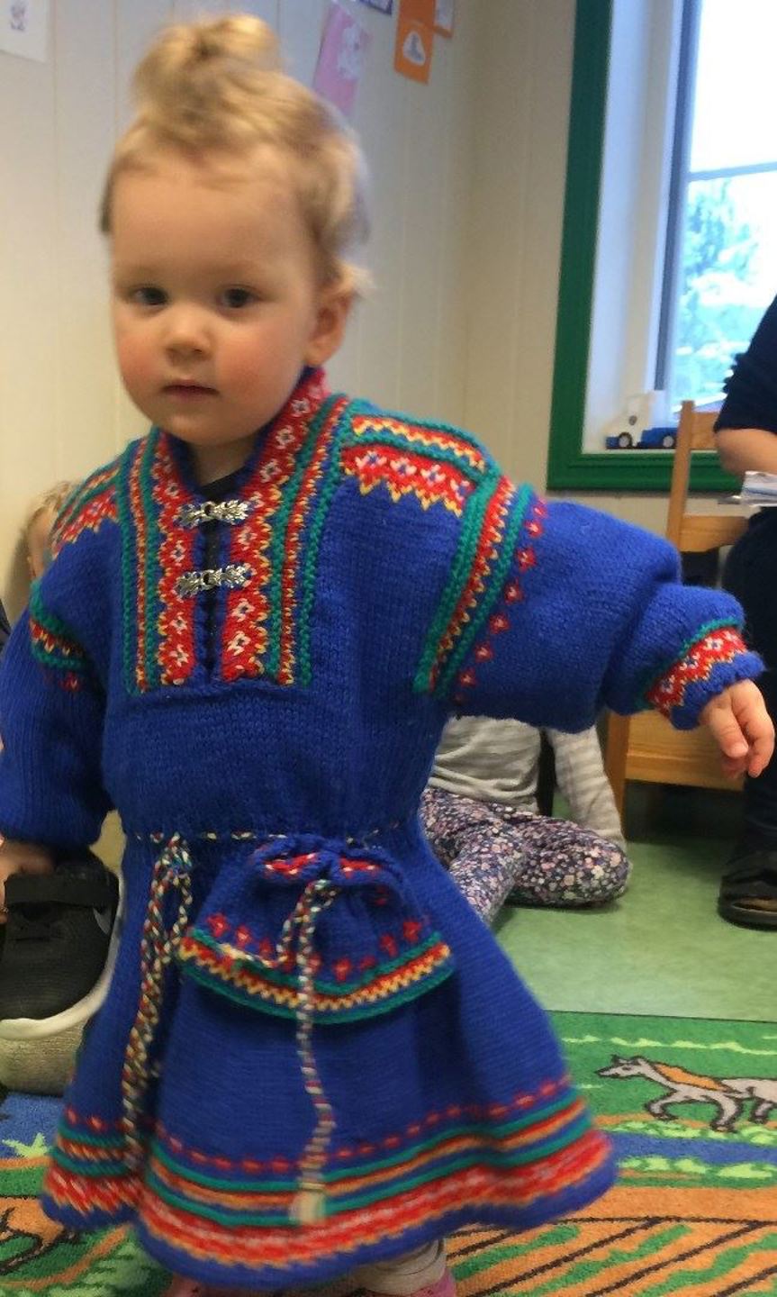 Tiril Marie hadde i dag på seg en kofte - noe som hun var stolt av og vise frem til de andre i samling. Kofte var bl.a med som samtaletema i dag.