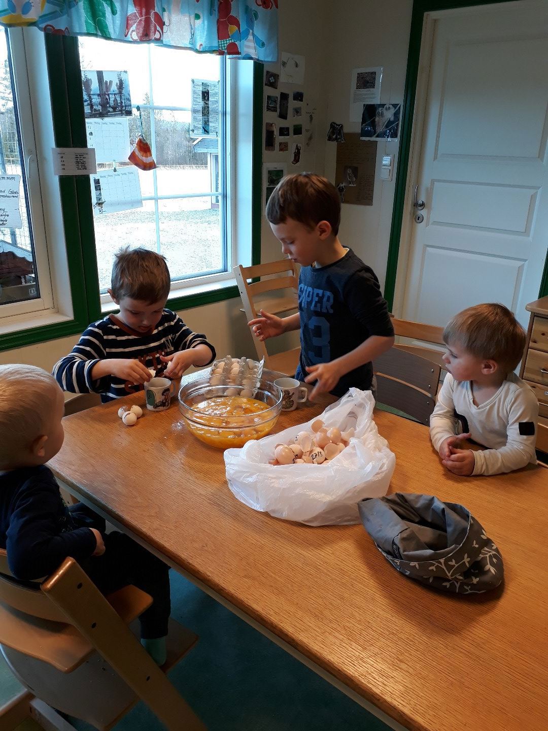 Fålaklubben har jobbet med forberedelser til påskefrokosten- noen av de yngste barna har beundret arbeidslysten