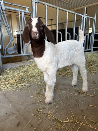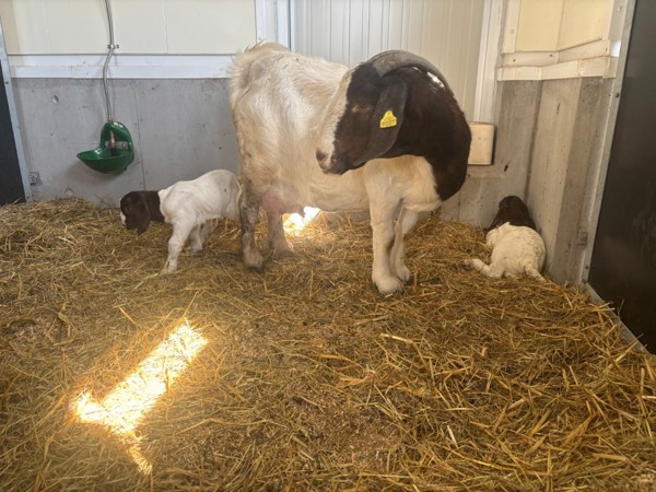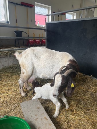Bukken har fått navnet Markus kom til gården 30.november 2023. Vinteren 2024 Hadde Markus og geitene paret seg og tre avkom kom til verden våren 2025