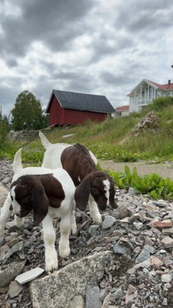 Bodil , mutter, Spiker og den andre er 4 geiter som bor på gården vår. Høsten 2023 kjøpte bonden i en bukk så 4 har blitt til 5.